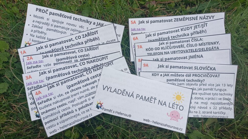 Výhodný balíček, ve kterém získáte 12 kartiček pro vyladěnou paměť na léto, 8 kartiček letních myšlenkových map a navíc bonus, ve kterém se dozvíte, jak můžete obojí propojit.